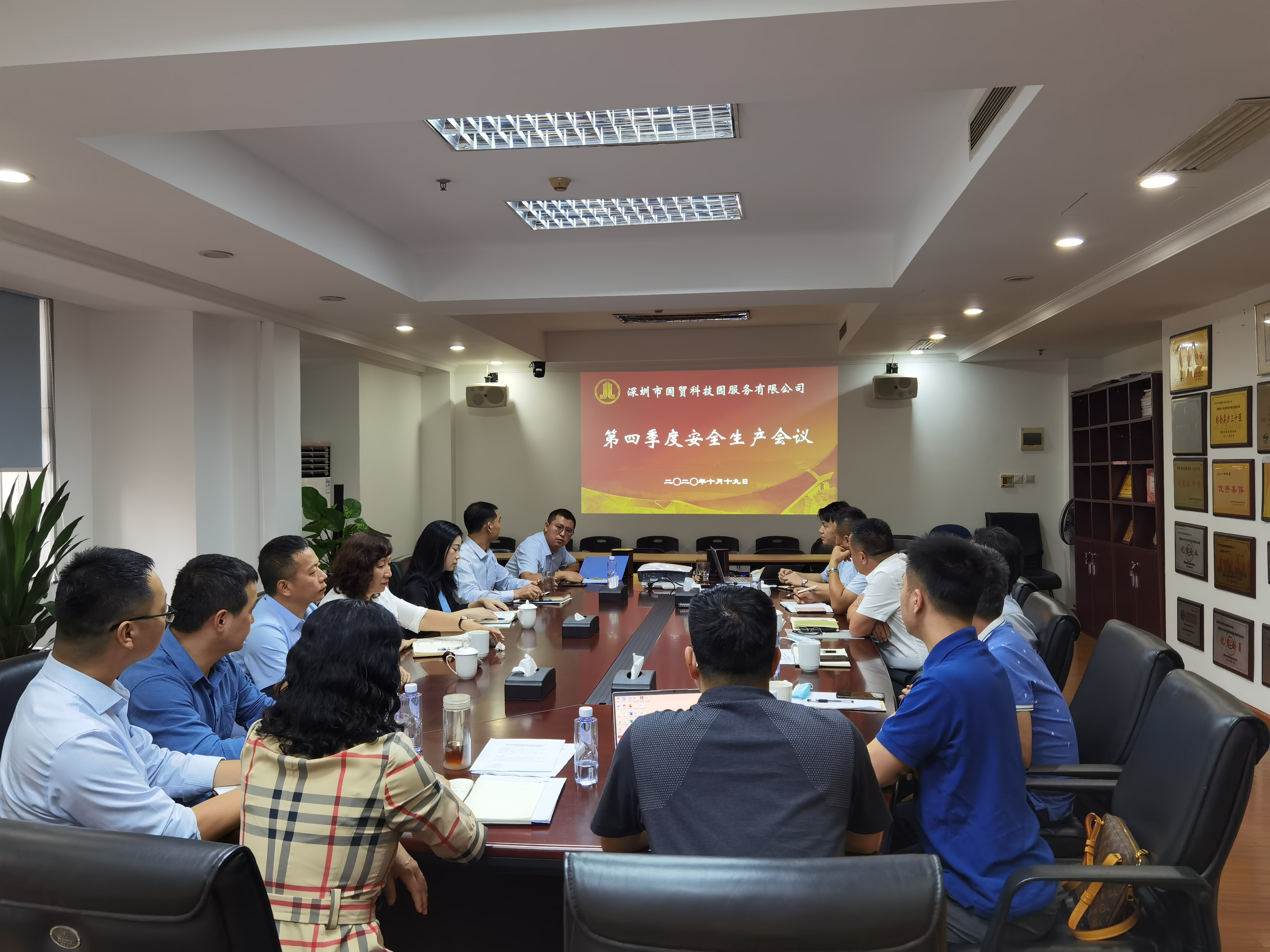 10月19日,国贸科技园公司组织召开第四季度安全生产工作会议。国贸科技园公司总经理王秋平、副总经理陈明勇、副总经理钟音、本部相关部室负责人、各分子公司(管理处、项目)主要负责人参加了会议。