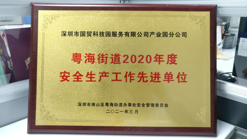 2021年4月23日,粤海街道2020年度安全生产工作表彰大会上传来喜讯,国贸科技园产业园分公司荣获“粤海街道2020年度安全生产工作先进单位”称号。