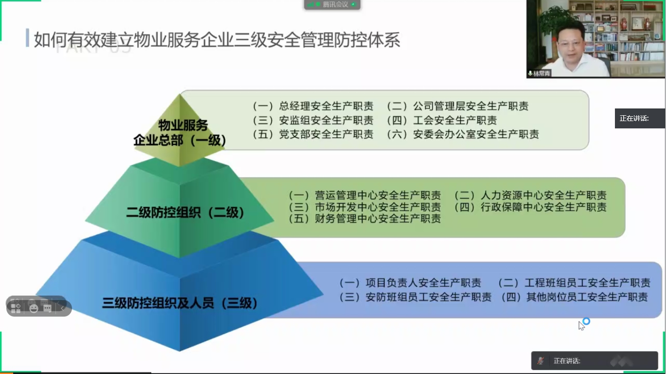 《高层民用建筑消防安全管理规定》的出台进一步完善了安全管理法律法规体系,对物业消防安全管理责任与活动实施作出系列规范,将对物业行业产生新的影响。本次公益宣讲的主讲嘉宾皆是行业专家,分别围绕《如何有效建立物业管理企业三级安全管理防控体系》《电动自行车充电火灾事故的法律责任解析》《从消防安全看业主、业委会的房屋安全责任》《五号令背景下物业企业消防安全财务成本变化及控制》《消防安全管理主体的例行责任与特别责任》做专题讲座,从不同维度、层面、视角,深刻阐释“安全管理怎么办”、“安全责任怎么看”、“安全机制怎么建”、“安防成本怎么担”,课程内容丰富多彩、立体多元。