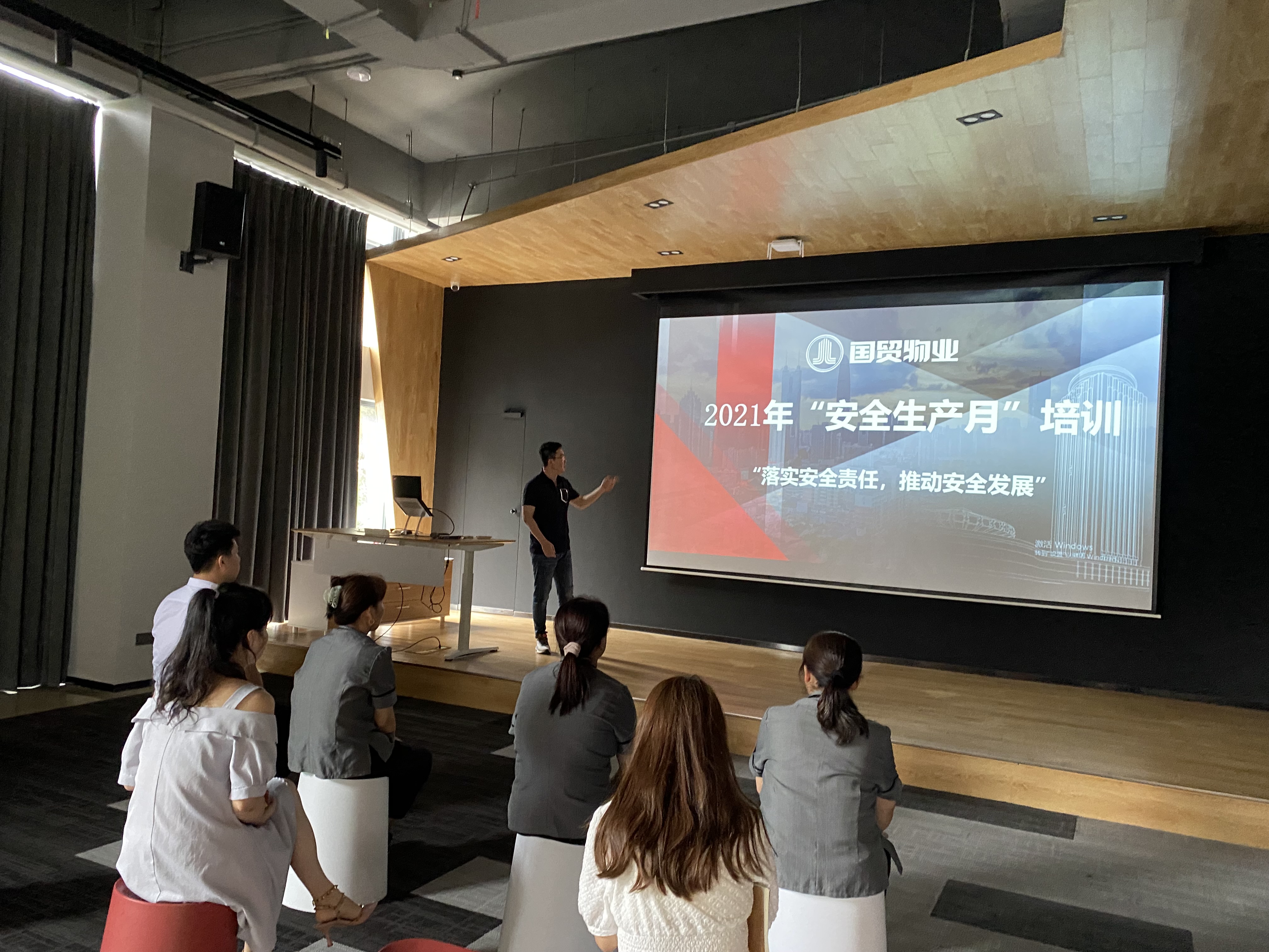 6月是我国安全生产月,为全面提高职工安全素养,切实提升防灾减灾救灾能力,贯彻落实国贸科技园公司《关于印发2021年“安全生产月”活动工作方案的通知》(深国科〔2021〕93号)有关文件要求,国贸物业管理有限公司杭州分公司于6月下半月,派遣公司消防安全专家在未来酒店、炎魂科技、马云基金会、巨人网络等项目组织开展了“落实安全责任,推动安全发展”为主题的“安全生产月”宣传培训活动。