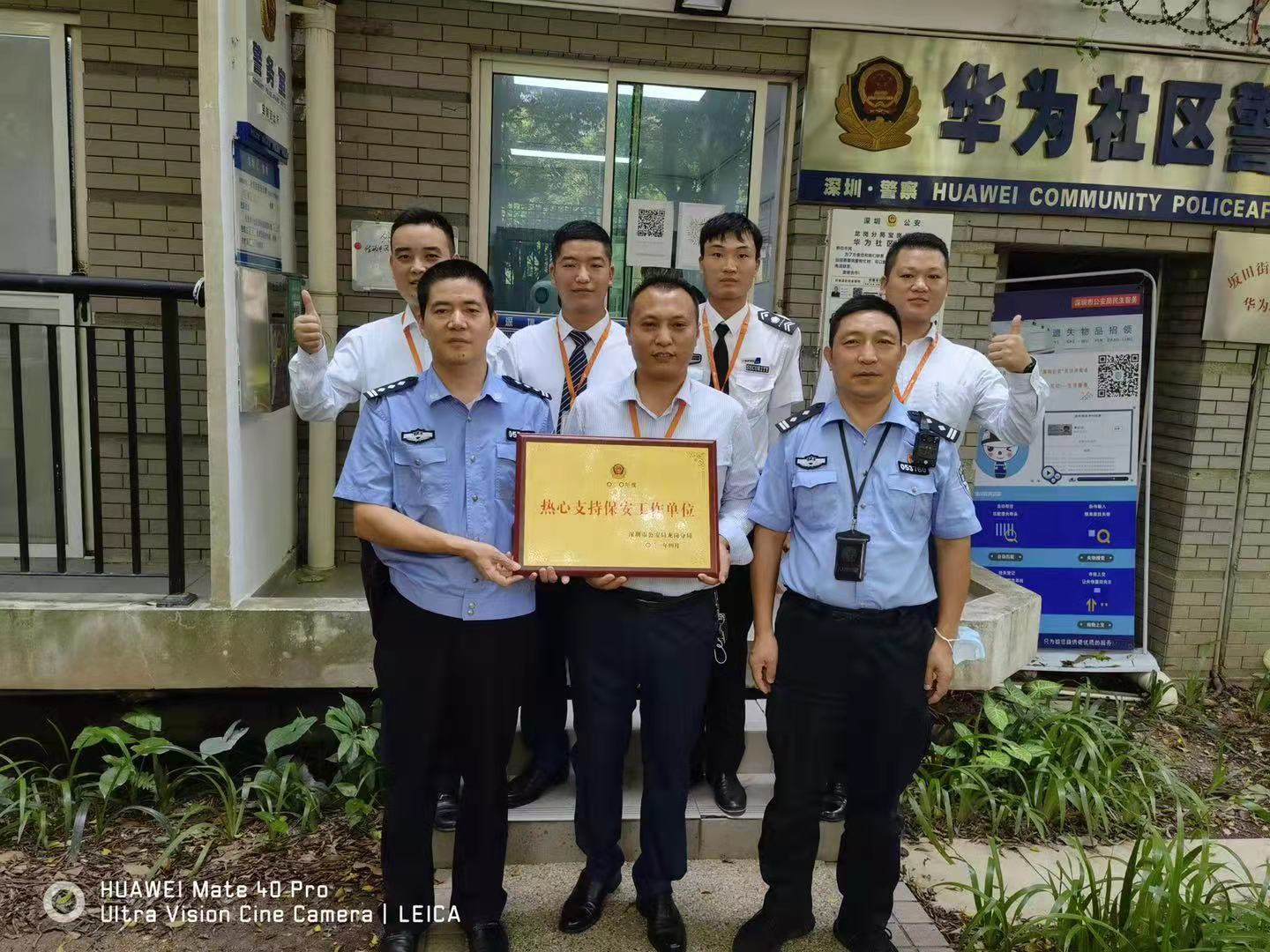 自项目部进驻坂田街道开展工作以来,始终恪守国有企业责任和使命,对坂田街道华为基地的治安维护管理工作始终如一的主动配合、积极协助、大力支持属地政府单位做好区域保安工作。