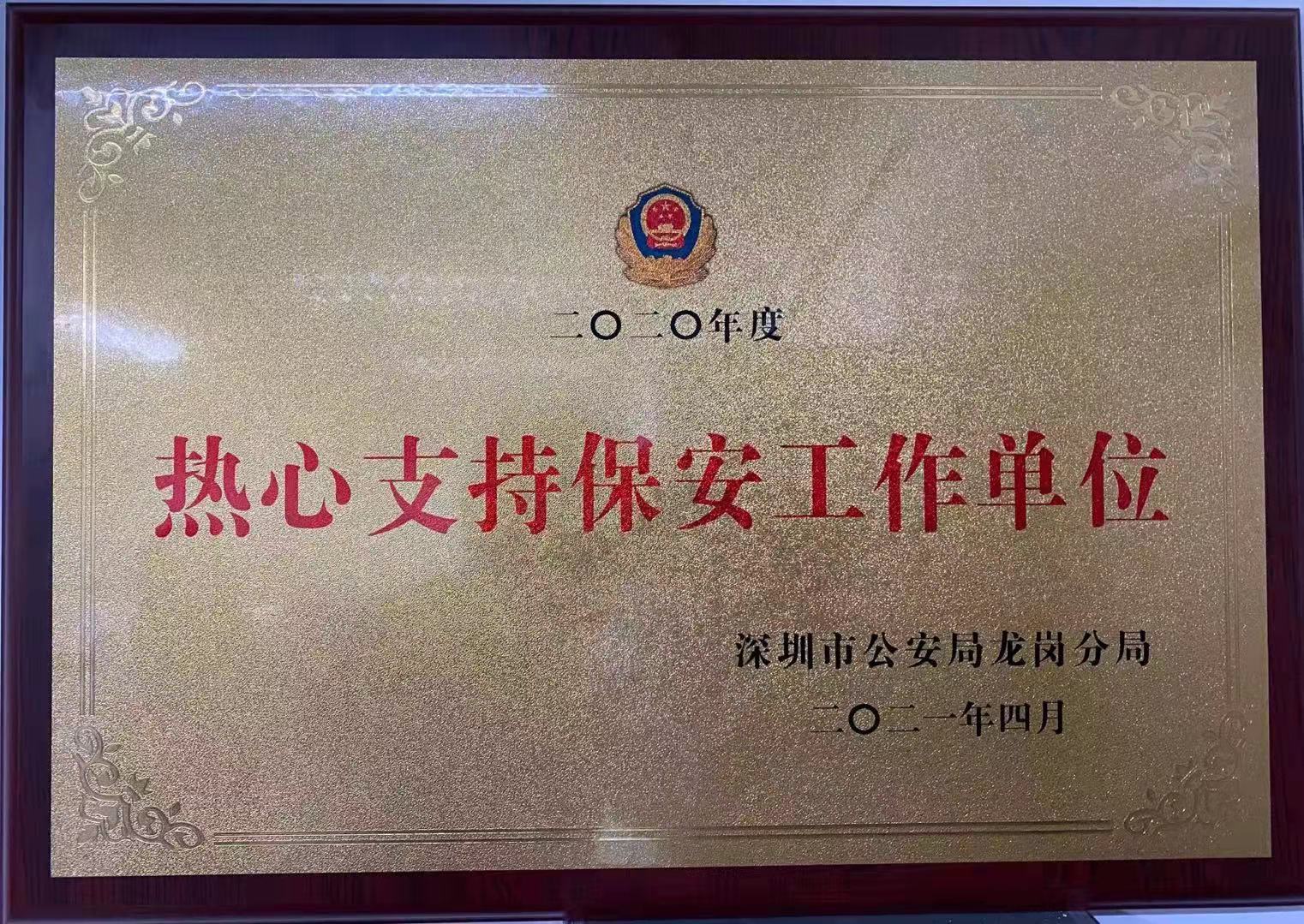 2021年8月13日,国贸科技园华为项目部在深圳市公安局龙岗分局举办的“热心支持保安工作单位”评选活动中脱颖而出,荣膺“2020年度热心支持保安工作单位”称号。