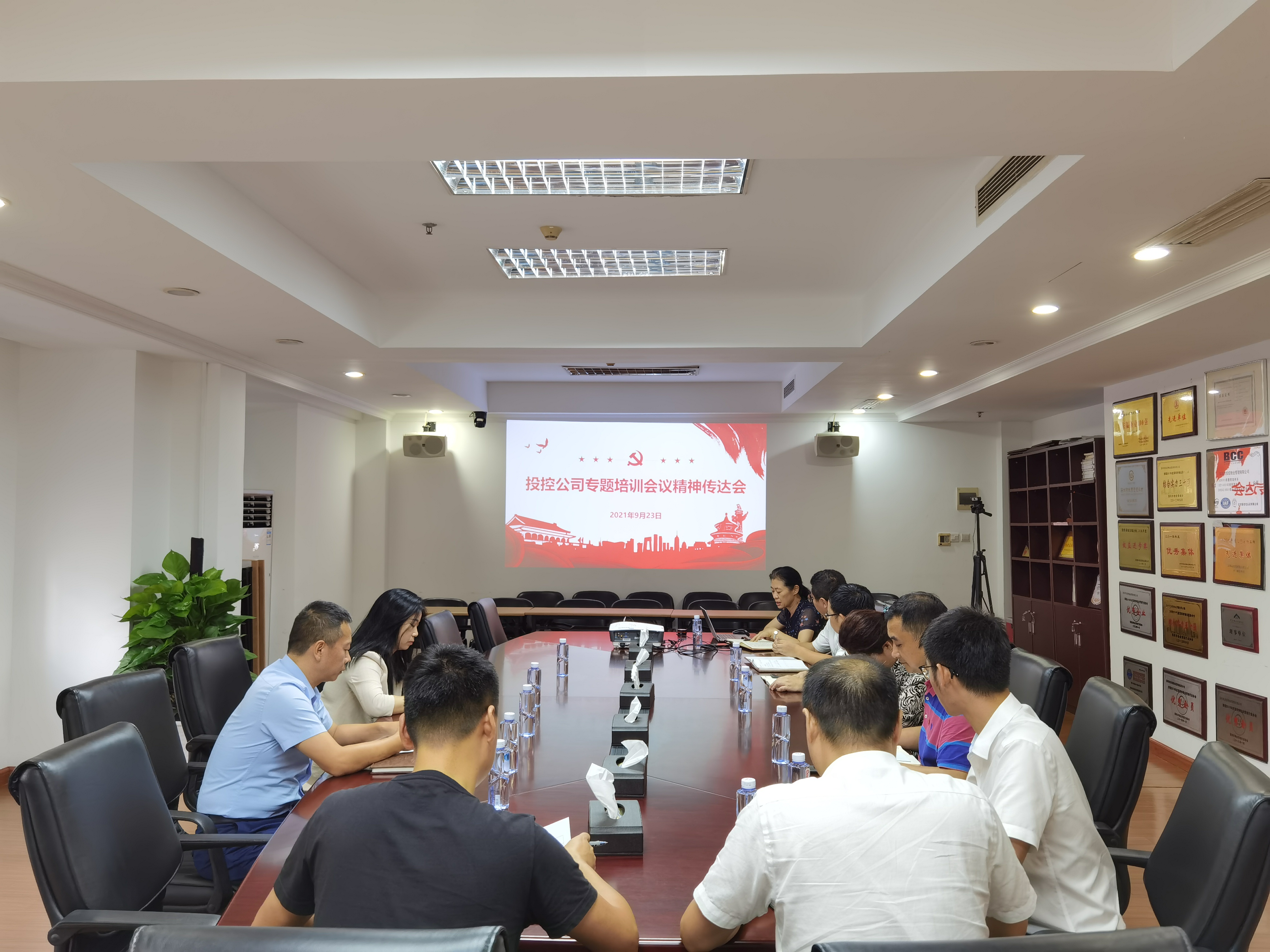 9月23日,国贸科技园公司在会议室组织召开投控公司专题培训会议精神传达会,并对各项注意事项进行宣贯。公司领导班子及党员干部参加会议。