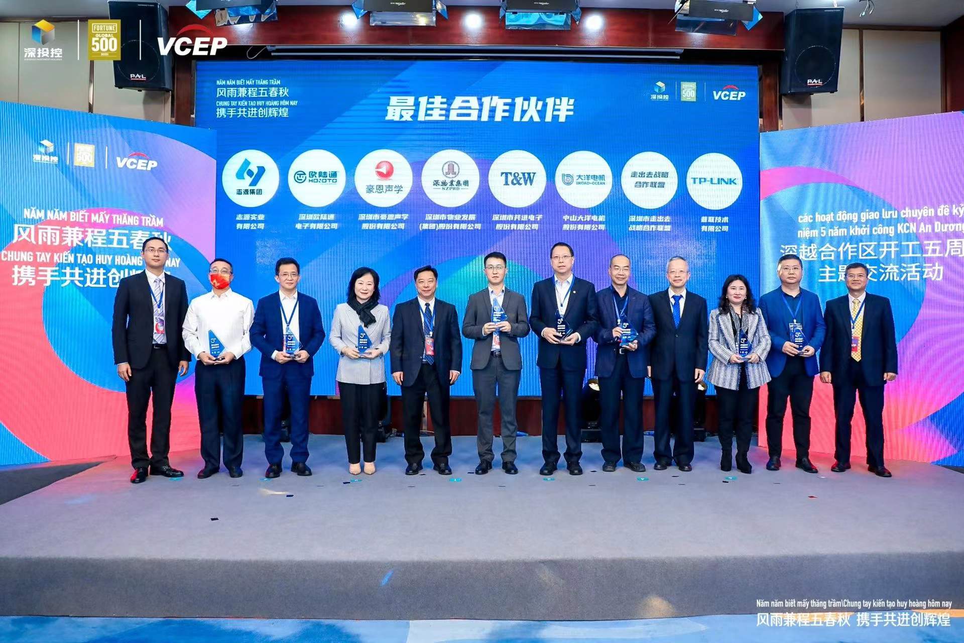 12月9日,“深越合作区开工五周年”庆祝活动在越南海防市安阳工业区隆重举办,同步与国内深投控进行线上共同庆祝。越南深国贸公司荣获深越公司授予“最佳合作伙伴奖”殊荣。