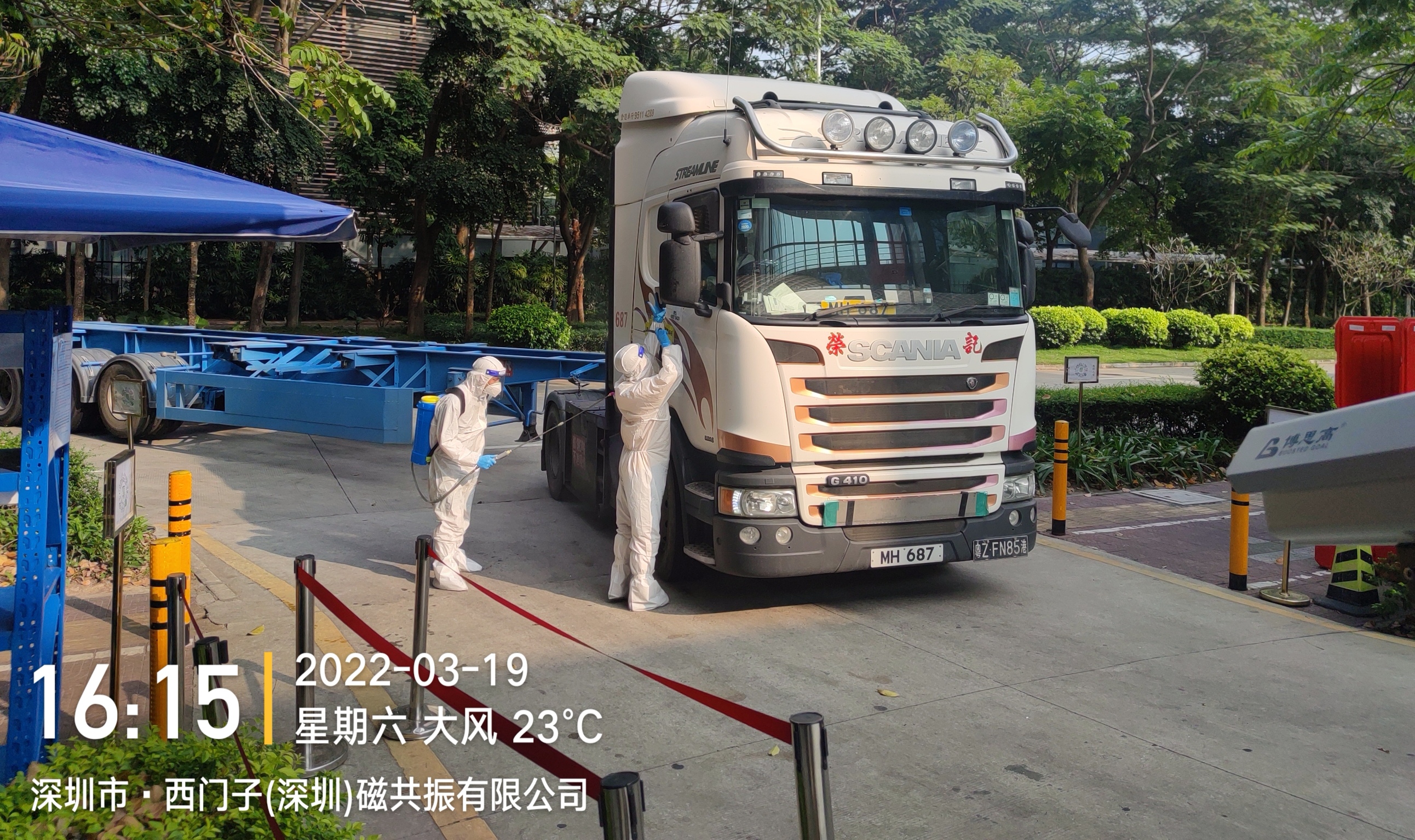 国贸科技园高新区分公司所属项目西门子磁共振园,是西门子医疗全球生产基地之一,配件及产品进出口量大。在国内、香港严峻疫情形势下,国贸科技园高新区分公司西门子项目受业主单位委托,肩负入园进口物流货车及物品的消毒消杀重要任务。