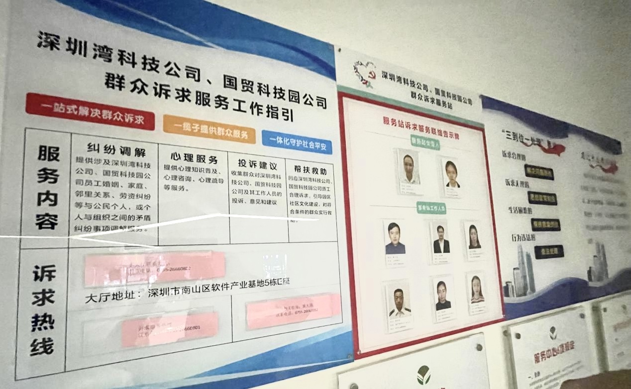 为坚持党建引领、推动基层矛盾纠纷“预防在先、发现在早、化解在小”,2022年8月,在投控公司的指导协助下,深物业集团下属物管板块国贸科技园公司联合深圳湾科技公司试点推广群众诉求服务点,在软件产业基地项目5栋E座公共服务大厅加建“群众诉求服务站”,力图“诉求服务在身边、矛盾化解在源头、问题处理在基层”。