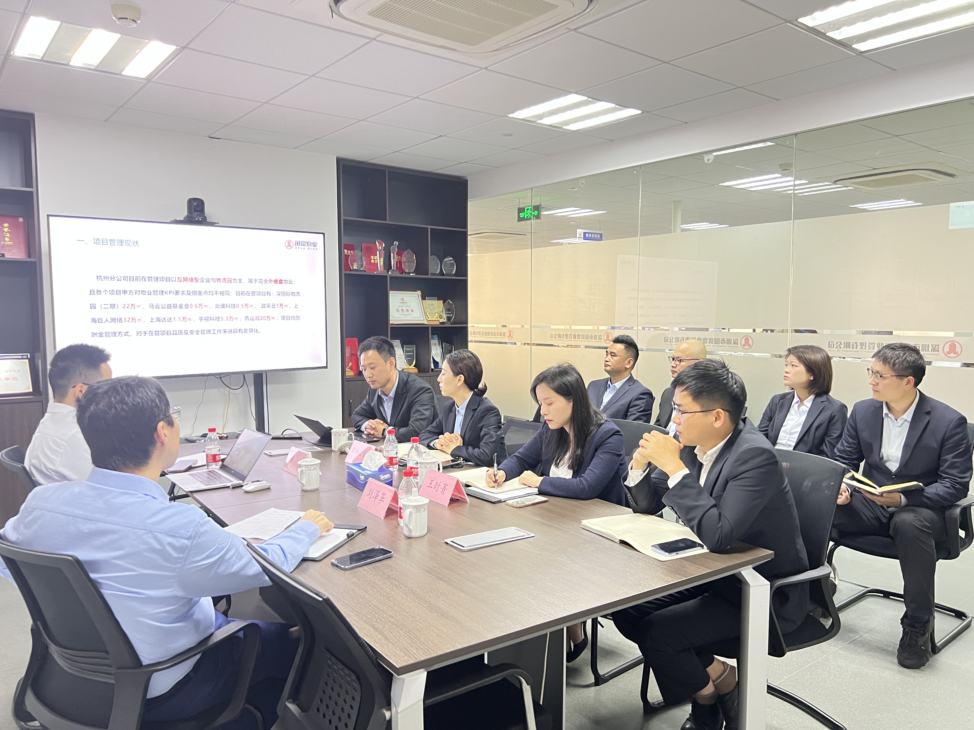 4月24日,国贸物业副总经理刘泽革一行莅临国贸物业杭州分公司开展品质安全指导,杭州分公司党支部书记、副总经理王时菁及市场运营部全体人员参加会议。