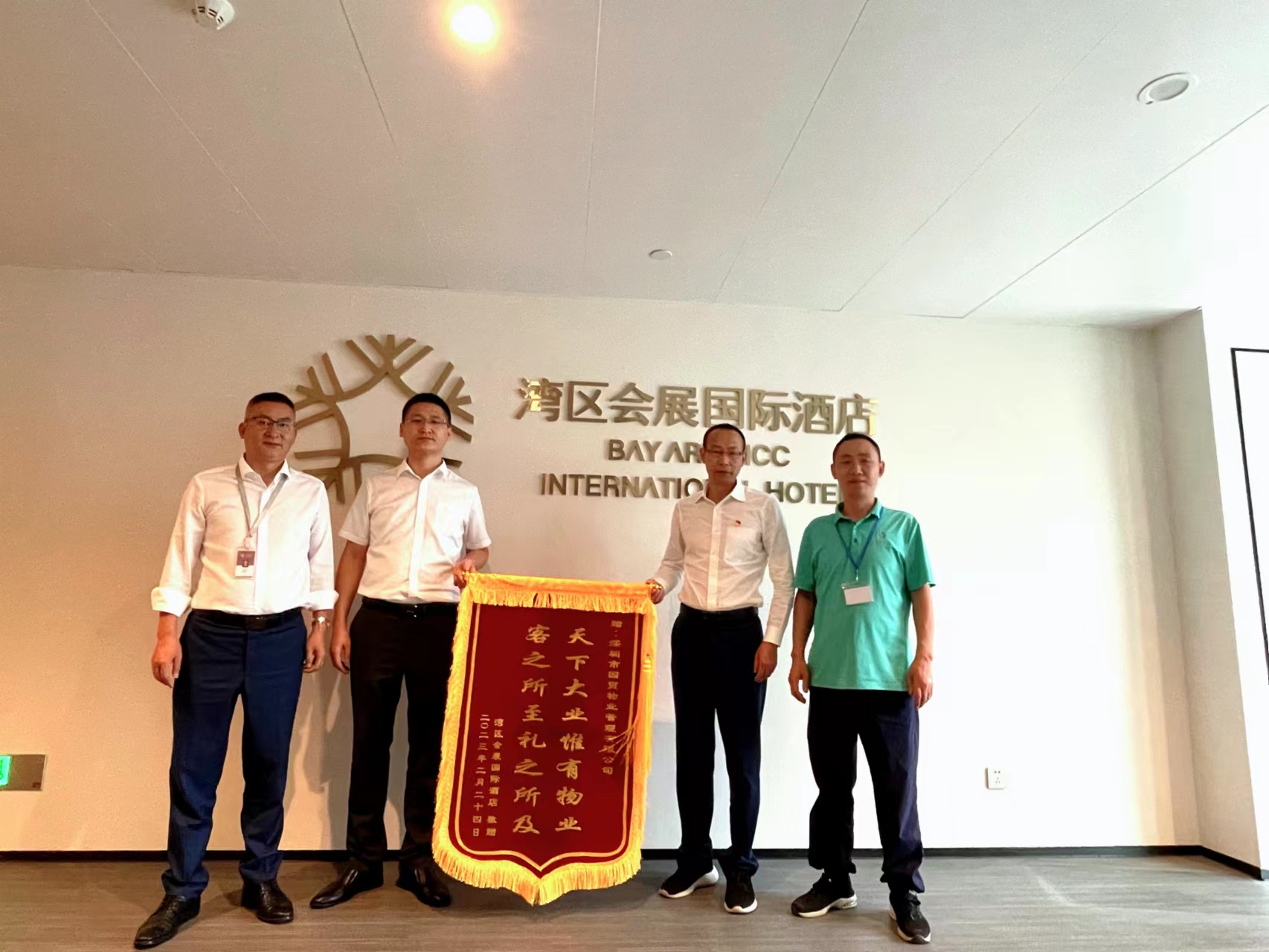 近日,湾区会展国际酒店向国贸物业公司所属国贸科技园公司服务团队送来感谢锦旗,对提供的专业物业服务保障工作给予充分肯定。