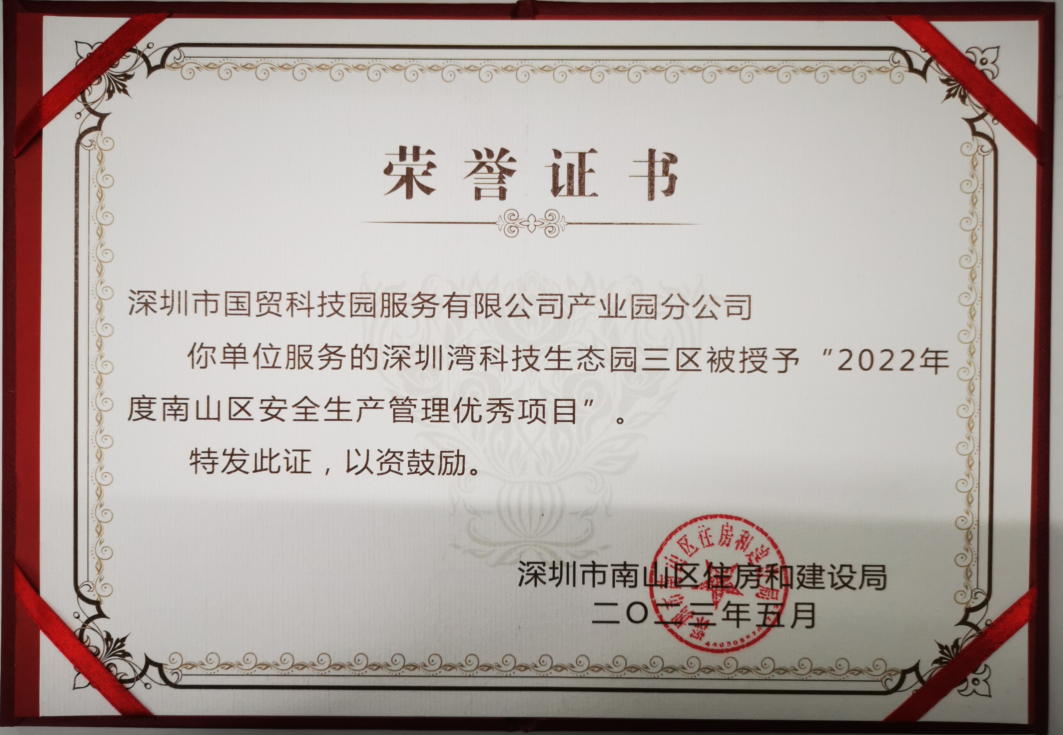 5月19日,2023年度南山区物业管理行业交流会暨南山区物业管理协会会员大会在中国华润大厦顺利召开。会上,国贸科技园公司(产业园分公司)生态园项目三区、生态园项目四区荣获“2022年度南山区安全生产管理优秀项目”荣誉称号。
