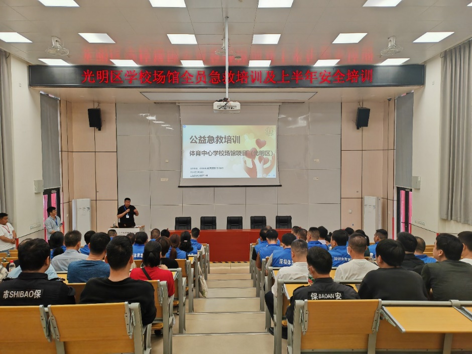 为提升学校运动场馆对外开放安全生产管理和应急处置水平,增强现场管理人员安全意识和处置能力,2024年3月24日,国贸科技园公司体育中心学校项目邀请专业应急培训机构开展应急安全培训。物业工作人员、供应商负责人、现场管理人员及储备人员超50多人参训。